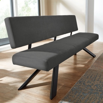 . ..als je niet graag gasten hebt. Want op deze luxueus gestoffeerde bank zit u graag wat langer. De royaal uitlopende poten van de bank brengen Scandinavische flair in uw eetkamer. Kies uw favoriete hoes uit vier prachtige bekledingsstoffen in ontelbare favoriete kleuren. Voor het frame kunt u kiezen tussen huiselijk massief hout en modern zwart staal naargelang uw smaak. De hoogwaardige beugels van de rugleuning zijn altijd van zwart staal en zorgen voor een spectaculair contrast. " Aurana" is een echte verleidster en zal je vaak verleiden om te gaan zitten.