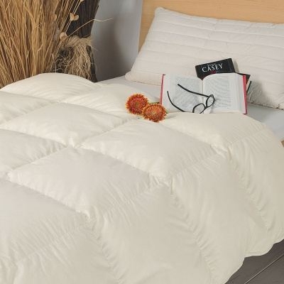 De witte nieuwe ganzendons van onze " Ansara-Superior" is ongebleekt en streng op schadelijke stoffen getest. Door de hoge vulkracht van het dons is dit dekbed zwevend licht en toch aangenaam knus, zodat hij voor het hele jaar geschikt is. Bovendien is " Ansara-Superior" dankzij de ganzendons bijna geurloos en daarmee ook geschikt voor gevoelige mensen geschikt. Het fraaie cassette stiksel houdt het dons op zijn plaats en streelt zachtjes uw lichaam. De tijk van 100 % katoen is door het gebruik van langstapelig katoenvezel bijzonder zacht en slijtvast. Het dons en de veren voor gewatteerde producten van allnatura zijn gegarandeerd niet van levende pluk. Onze partnerfabriek controleert daartoe permanent alle leveranciersrelaties. Het zorgvuldig geselecteerde dons dat is gebruikt, is op grond van zijn hoge vulkracht vele malen volumineuzer, omvangrijker en daardoor pluiziger dan conventioneel dons. Zodoende is bij een laag gewicht de warmteafgifte maximaal. Het dons en de veren worden in onze partnerfabriek regelmatig in een eigen laboratorium door opgeleide specialisten gecontroleerd en geselecteerd. Het perfect verwarmende donzen vierseizoenendekbed " Ansara-Superior" verkrijgt u exclusief bij allnatura.