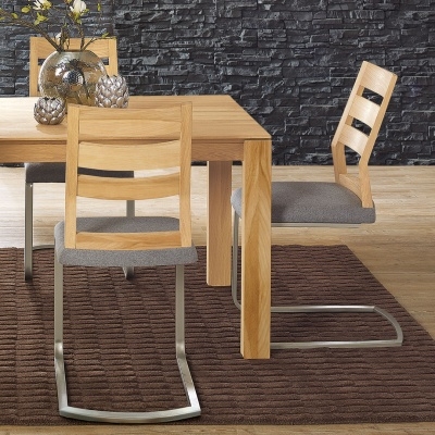Deze comfortabele sledestoel combineert moderniteit en traditie op een spannende manier. Het roestvrijstalen of matzwarte metalen frame geeft de stoel een lichte en moderne uitstraling. De klassiek traditionele rugleuning, in een driedelige look, is verkrijgbaar in core beuken, eiken of walnoot. Dankzij de 3 ergonomisch gevormde latten en de slimme knik in de lendenstreek, zit u uiterst comfortabel. De comfortabele zitting kan precies worden afgestemd op uw interieurstijl met een aangename bekleding van wolvilt of een elegante bekleding van echt leer in aantrekkelijke kleuren.
