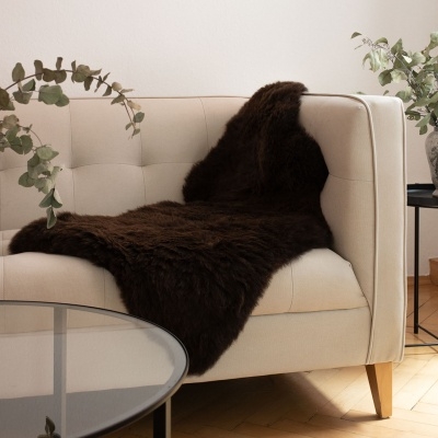 - zult u deze vacht niet meer willen missen. Door zijn natuurlijk kleurverloop tussen donkere ondervacht en iets lichtere punten, ziet deze vacht er bijzonder edel uit op lichte vloeren of meubels. Onze decoratievacht is een ongeschoren lamsvacht in een edele mokka-bruine kleur, dat een chroomvrij looiproces heeft ondergaan.