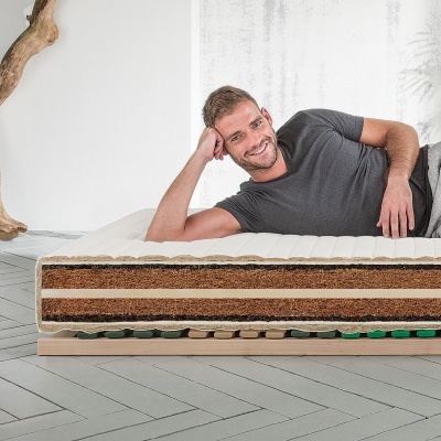Wilt u een klassieke natuurmatras met stevig ligcomfort in een moderne comfortabele hoogte? Met onze kokos/paardenhaar matras " Cavallo-Maxima" laten we uw wens in vervulling gaan! Voor u hebben we dierlijk haar, plantenvezels en natuurlatex perfect op elkaar afgestemd. De kern van de matras zijn de twee lagen van gelatexeerd kokos, die ervoor zorgen dat de matras stevig, maar toch elastisch ligt. De natuurlatex laag van 100 % natuurrubber dient als puntelastische buffer tussen de twee kokoslagen. Bovendien verhoogt deze laag het ligcomfort zonder het stevige karakter van de matras te veranderen. De extra stevige wattering met hoogelastisch paardenhaar is ademend en kan veel vocht absorberen zonder vochtig aan te voelen. Daarom is deze natuurmatras ook perfect voor mensen die 's nachts veel kunnen zweten. ...