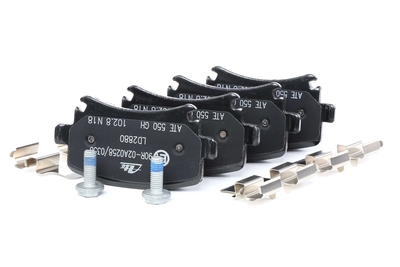 13.0470-2880.2; Remblokkenset; ATE; Ceramic; Geschikt voor slijtage waarschuwingscontact, Excl. slijtage waarschuwingscontact Met remzadelschroef Met toebehoren; Voor SKODA, AUDI, VOLKSWAGEN, VW, SEAT; LD2880, 1K0698451G, 1K0698451P, 1K0698451S, 3AA698451