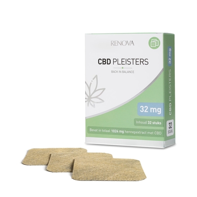 Bent u de smaak van CBD olie beu? Kunt u met CBD capsules niet de juiste dosering vinden? Of bent u op zoek naar een zeer effectieve opname-methode? Nieuw Renova CBD pleisters met 32mg CBD per stuk zijn nu beschikbaar en kunnen een enorme uitkomst zijn. Pleisters bieden enkele belangrijke voordelen vergeleken met oliën of andere CBD-producten. Renova CBD pleisters: Géén onprettige CBD olie smaak Gelijkmatige dosering gedurende 8-10 uur Hoge biobeschikbaarheid (90-95%) Uiterst effectieve opname Voordelig in prijs Makkelijk te gebruiken Geen First-Pass-Effect (geen afbraak via maag/maagwand of lever) Klik op de button "bekijk kwaliteitsrapport" hierboven om een bijsluiter over het gebruik en de dosering te kunnen downloaden. CBD en kinderen Om (jonge) kinderen een CBD product te laten innemen kan ooit lastig zijn vanwege de smaak of omdat ze een capsule te groot vinden. CBD pleisters zijn dan een goed alternatief vanwege de gebruiksvriendelijkheid en het gemak. Om niet direct een hoge dosering aan uw zoon of dochter te geven, kunt u de pleister doormidden knippen of zelfs in vieren. Op deze manier kunt u gemakkelijk de dosering bepalen. Legaal in Nederland Naast CBD bevatten de pleisters ook de actieve cannabinoà den CBN, CBC, CBCD, CBG, THCV en THC. Het THC-gehalte is verwaarloosbaar dus het veroorzaakt geen high gevoel. De pleisters zijn hierdoor legaal in Nederland te koop. Smaakloos en uiterst effectief Een van de grote voordelen van pleisters is de afwezigheid van de smaak. Mocht u de smaak van CBD olie niet prettig vinden, dan kunnen de pleisters een oplossing zijn. Een ander groot voordeel van pleisters is de hoge biobeschikbaarheid. De biobeschikbaarheid geeft de mate aan waarin een stof op de juiste plek in het lichaam aankomt, dus in hoeverre de stof wordt opgenomen door het lichaam. Gemiddeld hebben oliën een biobeschikbaarheid van 40-50%. Deze CBD-pleisters daarentegen, hebben een biobeschikbaarheid van 90-95%. Dit betekent niet alleen dat de pleisters effectiever zijn, maar dat ze ook naar verhouding goedkoper zijn dan de meeste oliën of capsules. Dit heeft alles te maken met de manier van inname. Omdat de CBD via de pleisters direct in uw bloedbaan wordt opgenomen, blijft er een veel hogere concentratie CBD in uw bloed achter. Vergelijk dat eens met olie of capsules, die u eerst inslikt. De CBD moet dan eerst door uw spijsverteringskanaal, waardoor een hoop CBD afgebroken wordt. Bijzonder makkelijk te gebruiken De pleisters geven u een gelijkmatige dosering gedurende 8-10 uur. Er komt dus steeds een beetje CBD in uw bloedbaan terecht, zonder dat u daar zelf iets aan hoeft te doen. U hoeft dus niet steeds aan een nieuwe dosering te denken of daar tijd voor vrij te maken. Handig, toch? Tenslotte zijn de pleisters erg makkelijk te gebruiken. U hoeft alleen de pleister op een willekeurig stukje huid te plakken, net zoals een gewone pleister. De pleister doet de rest! Kies bij voorkeur wel een plek op het lichaam waar wrijvende kleding de pleister niet hindert. Let op: de pleisters zijn niet meer effectief indien u er mee gaat douchen, in bad gaat of gaat zwemmen. De CBD in de pleisters zal weggespoeld worden. Productinhoud 32 mg CBD per pleister 1024 mg CBD totaal in doosje 32 pleisters totaal in doosje Het totaal van 1024 mg is vergelijkbaar met 1 flesje 10% CBD olie (10ml). Waarom is er weinig informatie beschikbaar over onze producten? Door de strenge EU-wetgeving, worden we ernstig beperkt in het verstrekken van informatie over de eigenschappen van onze producten. Ondanks alle bekende voordelen van CBD, mogen wij geen medische claims maken, tenzij deze worden vermeld in de EU-database. Mocht u specifieke vragen hebben over een van onze producten, dan voorzien wij u heel graag van persoonlijk advies!