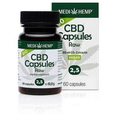 Deze CBD capsules met biologisch hennepzaadolie met 2, 5% CBD zijn geproduceerd door Medihemp, een betrouwbaar en zeer populair merk. Het product is volledig natuurlijk en vanzelfsprekend ook helemaal legaal. De inhoud van de capsules is 100% natuurlijk en bevat ongeveer 6, 75 CBD per capsule maar 13, 5mg CBD (gehalte per dagelijkse dosis) per 2 capsules (voorheen 12, 5mg CBD per 1 capsule), ook wel cannabidiol genoemd. Het hennepextract en de hennepzaadolie zijn gemaakt op basis van biologisch geteelde hennepplanten.