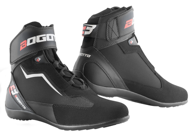 * versterkingen op de enkel, in het gebied van de tenen en hielen * schakelversterking op de schoen * vetersluiting met klittenbandsluiting artikel: Bogotto Mix Disctrict Motorschoenen, zwart, afmeting 37 voor vrouw