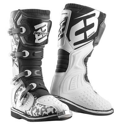 * 4 gespen * scheen- en enkelbescherming * versterkingen op het gebied van tenen en hielen artikel: Bogotto MX-3 Camo Motorcross Laarzen, zwart-wit, afmeting 41 ...