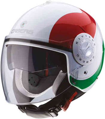 * krasbestendig vizier * geĆ ntegreerde zonneklep * gemakkelijke en snelle verandering van visor artikel: Caberg Riviera V3 Sway Italia Jet helm, veelkleurig, afmeting XS ...