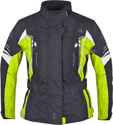 Goede ventilatie door het openen van de ventilatie-ritsen in de dij gebied door AIR VENT systeem. Kenmerken: waterdicht, winddicht, ademend Huishoudelijke apparatuur: klimaat membraan uitneembare voering Beschermers op schouders en ellebogen gecertificeerd volgens nl 1621-1 Verwisselbare Speciale schuim invoegen in het gebied terug Verwisselbare De beschermer van de rug kan worden ingebouwd