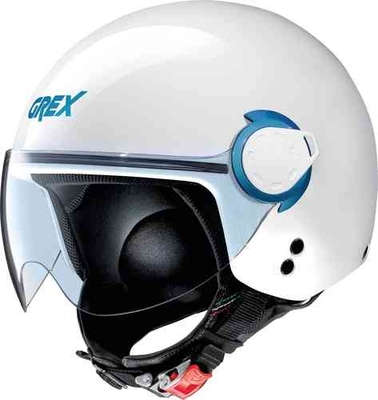 GREX G 3.1 E couplé Jet helm Dit is de Mini-Jet van GREX gebaseerd op het Nolan N20 model. Het altijd up-to-date ontwerp, compact formaat (dankzij de beschikbaarheid van twee buitenste schil maten), Microlock retentie systeem met Micrometrische aanpassing en goed algemeen comfort maken de G 3.1 E een interessant product voor diegenen die op zoek zijn naar een Mini-Jet met een concurrerende prijs en de garantie van de ervaring van Nolan.Functies: licht blauw getint vizier afneembare, comfortabele voering Chin ProtectorSpecificaties: ECE 22, 05 Microlock sluiting polycarbonaat omhulselInhoud: 1 x GREX G 3.1 E Jet helm