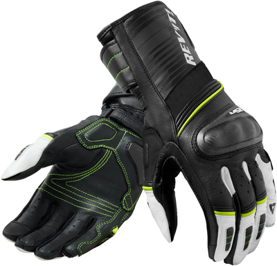 * Buitenstof: trommelgeverfd geitenleer, PU-gecoate stof, PWRshell 500D stretch inserts * Touch screen geleidende stof op de duimen en wijsvinger * Binnenvoering: Tri-Fleece voering (tricot stof van polyester) artikel: Revit RSR 4 Motorfiets handschoenen, zwart-geel, afmeting L