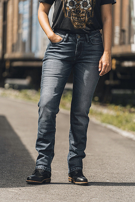 * Midden taille met recht gesneden been * Materiaal: Premium blauw gewassen stretch denim met hoge slijtvaste UHMWPE vezels, 12 oz * 25% elasticiteit artikel: Rokker Tech Mid Straight Dames Motorfiets Jeans, blauw, afmeting 3XL voor vrouw