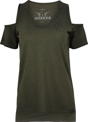 * Schouder gratis T-shirt * stuk geverfd * Gemaakt in Portugal artikel: Rokker TRC Shoulderfree Dames T-shirt, groen, afmeting L voor vrouw