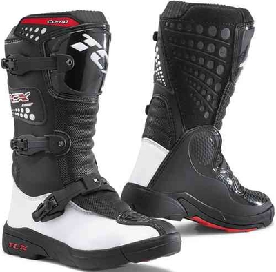 TCX Comp Kids Motocross Boots De perfecte laars voor kinderen die op zoek zijn naar een technisch superieur maar eenvoudiger product.Functies: Bovenwerk gemaakt van microvezel Ademende Air Tech voering De plaat van het scheenbeen Malleolus polyurethaan bewaker 3 polyurethaangespen 3 kleuren geĆ njecteerd, slijtvast