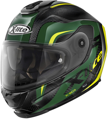 - donker getint, gemaakt van Lexan, krasbestendig gecoat artikel: X-Lite X-903 Ultra Carbon Maven N-Com Helm, zwart-groen, afmeting L