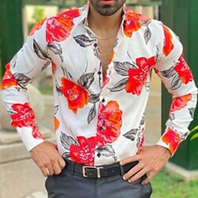 Chemise Homme Floral Col Rabattu Bouton Bas Manches Longues Plein Air
