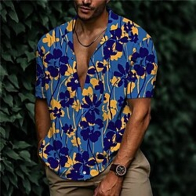 Chemise Homme Imprimé Floral Col Rabattu Bouton Bas Imprimer Manches