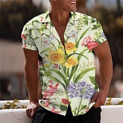Chemise Homme Imprimé Floral Col Rabattu Bouton Bas Imprimer Manches