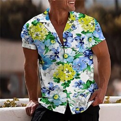 Chemise Homme Imprimé Floral Col Rabattu Bouton Bas Imprimer Manches