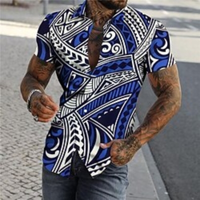 Chemise Homme Imprimé Géométrie Col Rabattu Bouton Bas Imprimer