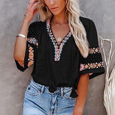 Tissu: Polyester; Manches Bretelles: Manches Courtes; Délicat: Lavage à Sec et à l' Eau, Lavable, Lavage en Machine; Pour: Femme; Thème:Géométrique; Style:Vêtement de rue, Ethnique; Elasticité: Micro-élastique; Type de Hauts: Chemise, Chemisier; Occasion:du"idien, Fin de semaine; Détails: Sans Doublure; Longueur du Haut: Normal; Type d'ajustement: Standard; Motif:Géométrique; Désign: Imprimer, Lacet; Décolleté: Col V; Page de garde:FF; date d'inscription:06/01/2022; Mode de production:approvisionnement externe; Tour de poitrine:; Longueur:; Largeur d'épaules:; Manche: