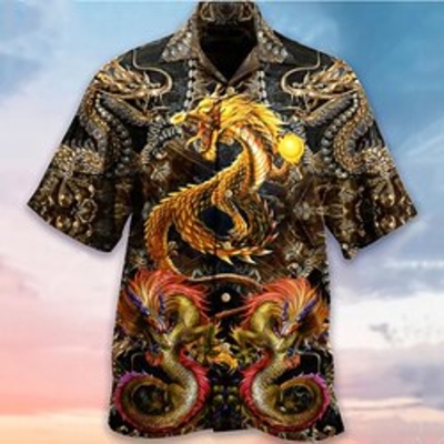 Homme Chemise Chemise Hawaà enne Dragon Imprimés Photos Col Rabattu