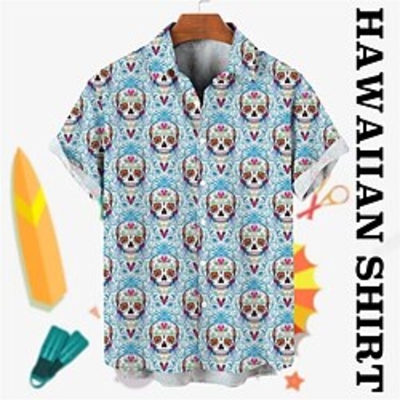 Homme Chemise Chemise Hawaà enne Floral Crânes Imprimés Photos Col