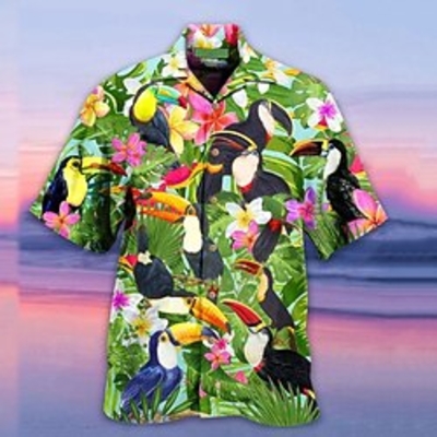Homme Chemise Chemise Hawaà enne Floral Imprimés Photos Perroquet Col