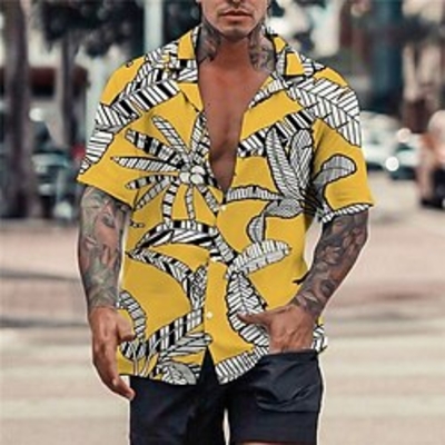 Homme Chemise Chemise Hawaà enne Imprimés Photos Feuilles Col Rabattu
