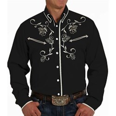 Homme Chemise Chemise Western Floral Imprimés Photos Col Rabattu Noir