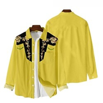 Homme Chemise Chemise Western Floral Imprimés Photos Col Rabattu Noir