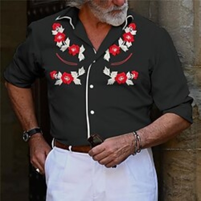 Homme Chemise Chemise Western Floral Imprimés Photos Col Rabattu
