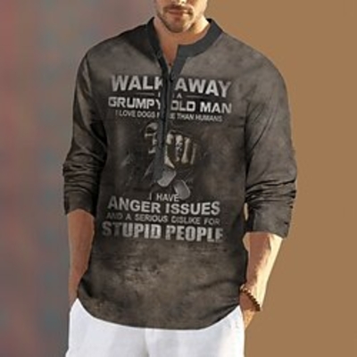 Homme Chemise Lettre Imprimés Photos Mao Bleu Kaki Gris Extérieur