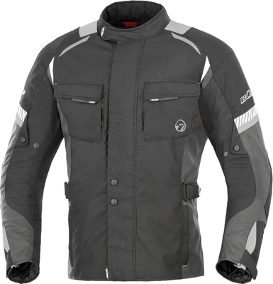 Functies Waterdicht, winddicht en ademend door klimatologische membranen Verwijderbare thermobekleding Verstelbaar op mouwen, taille en heup Ergonomisch aangepaste pasvorm Scheur rondverbinding 4 buitenzakken 1 binnenzak Verwijderbare beschermers op schouders en ellebogen klaar voor SAS-TEC rugbeschermer Veiligheidsnaden volgens ISO 4916 Reflecterende elementen Ademende mesh voering Duurzame 450 D polyester stof met inzetstukken op ellebogen en een klimaatmembraan Overzicht rugbeschermers