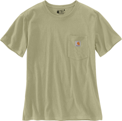 Carhartt T-shirt met borstzak verscheen voor het eerst in 1992 en werd al snel een favoriet onder de hardwerkende mensen die het droegen. Dit T-shirt voor dames is gemaakt van dezelfde stevige katoenen stof als het beroemde K87 shirt voor heren, behalve dat de vorm is aangepast. Functies Zwaargewicht Jersey, 6.75 oz/yd²
