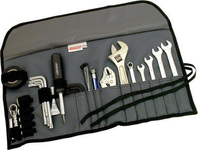 De perfecte gereedschapsset voor 2018 en oudere BMW motorfietsen. Ontworpen voor reparaties en aanpassingen langs de weg. Functies Inclusief 6 torx sleutels, 5 inbussleutels, 4 metrische sleutels, een mini ratel met 2” verlenging, 4 doppen en een 19x 22mm asadapter De kit wordt gecompleteerd met een 6-in-1 schroevendraaier, borgtang, verstelbare sleutel, kabelbinders, mechanica draad, duct tape, schroefdraad locker, en een bandenmeter De tools blijven georganiseerd in een heavy-duty oprolbaar etui Inhoud Combinatiesleutels 8, 10, 12, 13 mm, en een Torx E10/12 8″ Crescent Wrench, (tot 26 mm) Verbindingstang Bandenspanningsmeter (0-50 psi) draad en ritsen Huissleutels 3, 4, 5, 6, 8 mm Torx sleutels T20, 25, 30, 40, 45, 50 6-in-1 Schroevendraaier Threadlocker Mini Ratel met verlengstuk & doppen (8, 10, 13 mm, en Torx E8) Duct Tape 22 X 19 mm as adapter Note Als u een R1200 of R1250 motorfiets bezit, is de aanschaf van de BMW T-50 achterwielsleutel, die speciaal is ontworpen voor het verwij...