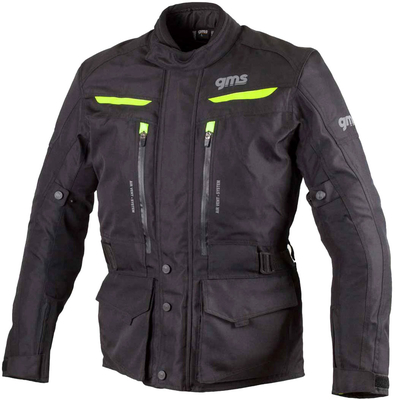 GMS-Moto Gear, Textieljas Waterdicht, Kleur: Zwart/Neon-Geel, Maat: