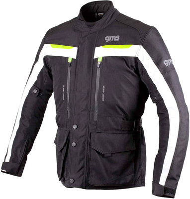 Features GERMADURA® 600D Mesh voering Waterdicht, winddicht, ademend door GERMATEX® membraan Air Vent systeem op borst en rug 4 buitenzakken, grote achterzak, documentenzak, diverse binnenzakken Verstelbare tailleband en armwijdte Armmanchetten met rits en klittenband Korte verbindingsrits Een groot aantal reflecterende prints Stretch inzetstukken bij elleboog Versterkte plaatsen bij valgevaar Gecertifieerde beschermers bij ellebogen en schouders Vak voor optionele rugprotector
