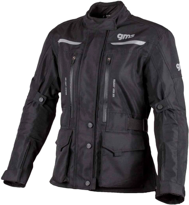 Features GERMADURA® 600D Mesh voering Waterdicht, winddicht, ademend door GERMATEX® membraan Air Vent systeem op borst en rug 4 buitenzakken, grote achterzak, documentenzak, diverse binnenzakken Verstelbare tailleband en armwijdte Armmanchetten met rits en klittenband Korte verbindingsrits Een groot aantal reflecterende prints Stretch inzetstukken bij elleboog Versterkte plaatsen bij valgevaar Gecertifieerde beschermers bij ellebogen en schouders Vak voor optionele rugprotector