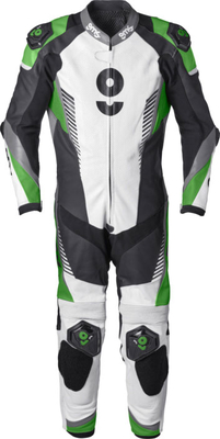 GMS-Moto GRC-1, Leren Pak 1st., Kleur: Zwart/Wit/Groen/Grijs, Maat: