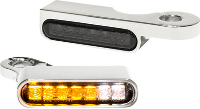 Als uitvinder van deze richtingaanwijzers staat Heinz Bikes® voor topkwaliteit -MADE IN GERMANY- en nauwkeurigheid van pasvorm, die anders is dan bij andere fabrikanten. De behuizingen zijn CNC gefreesd uit hoogwaardig aluminium en zijn verkrijgbaar in zwart en chroom en optioneel met wit positielicht. Je zult versteld staan hoe helder deze richtingaanwijzers schijnen en hoeveel vermogen er uit de kleine LED s komt. De 12V richtingaanwijzers zijn eenvoudig te installeren "plug & play" en een aparte weerstand is niet nodig op modellen met Can Bus. De LED-lichtunits zijn E-gemarkeerd en voldoen aan de TÜV-richtlijnen. Handlebar knipperlichten van Heinz Bikes® zijn de enige op de markt die exclusief voor Harley-Davidson per modellijn en bouwjaar zijn ontworpen en geproduceerd, zodat ze altijd gelijk liggen met de armaturen. Functies Kleine richtingaanwijzers met positielichten in edel Heinzbikes® design Extreem heldere SMD LED verlichtingstechnologie Passen perfect in het fietsontwerp Hoge... ...
