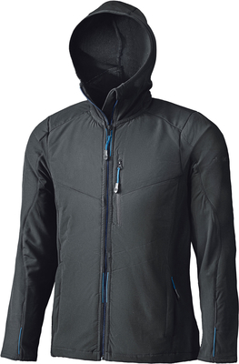 Buitenste schil water- en windafstotend, ademend, elastisch Softshell-weefsel Voering 3M THINSULATE® voering Pasvorm/functies Stretch zachte shell stof aan de zijkant, armen en rug geà ntegreerde capuchon - draag hem onder je helm 3 externe zakken 1 binnenzak zachte kraag mannelijke en vrouwelijke maten Held Clip-in Technologie