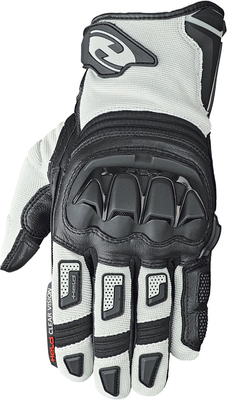 Materiaal Bovenhand gemaakt van elastiek met lederen afwerking Palm van zeer slijtvast kangoeroeleer kleurecht en zweetbestendig palm ongevoerd comfort/eigenschappen Speciale naad met open randen Gordel in de pols Geweven manchet Ventilatie-inzetstukken tussen de vingers (ACS-Air Circulation System) Onderhands gestikt voor perfect ademend vermogen en tactiliteit Speciaal leer op de wijsvinger voor het bedienen van smartphones Bescherming Gecertificeerd volgens de EN 13594:2015 norm " Beschermende handschoenen voor motorrijders". Versteviging van de rand van de hand met indexvinger Knokkelbescherming door hard plastic omhulsel Knokkelbescherming getest (impacttest voor knokkelbescherming) Palm/handrand versterking met Super-Fabric® materiaal, onderlegd met Armaprotec ...