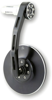 HIGHSIDER CONERO stuurspiegel, E-keurmerk. CNC-gefreesde stuurspiegel met een ronde kop van zwart geanodiseerd aluminium. In combinatie met gepolijste randen staat dit model voor een nobel, stijlvol ontwerp. Geschikt voor sturen met een binnendiameter van 12 tot 22 mm. Dus voor de meeste 7/8 inch en 1 inch aluminium of stalen sturen. Ideaal zicht dankzij het gebogen glas met een lichte tint. De spiegel kan links en rechts worden gebruikt. De HIGHSIDER CONERO-serie heeft een minimalistisch ontwerp en past perfect bij onopvallende motorfietsen. De vormvaste en hoogwaardige, machinaal bewerkte aluminium onderdelen geven je roadster gezicht en karakter. De HIGHSIDER CONERO-serie brengt je terug naar de tijd waarin een motorfiets gewoon een motorfiets mocht zijn