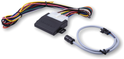 - voor automatisch schakelen tussen dagrijlicht en dimlicht. De HIGHSIDER PW E-BOX TYPE 1 detecteert wanneer het donker of licht wordt en schakelt dan automatisch het dimlicht in en tegelijkertijd het dagrijlicht uit (of omgekeerd). Extra uitgerust (optioneel schakelbaar) is de zogenaamde COMING HOME FUNCTIE. Hiermee kunnen de dagrijlichten nog 30 seconden blijven branden nadat de motorfiets in het donker is uitgeschakeld. Hiervoor is geen schakelaar nodig. Afmetingen Hoogte: 16 mm Breedte: 56, 5 mm Breedte met bevestigingsriemen: 75 mm Lengte: 48 mm Montagebandjes: 3 mm x 11 mm (sleufgat) Gewicht: 46 g Kabellengte: 400 mm Kabellengte lichtsensor: 600 mm (totaal) Aansluitingen Paarse/ Zwarte kabel = Grootlicht IN Gele/groene kabel = parkeerlicht IN Zwarte kabel = massa IN (-) Rode kabel = voedingsspanning IN (+) Blauwe kabel = dimlicht UIT Zwarte kabel = massa UIT (-) Roze kabel = dagrijverlichting UIT (TFL) Oranje...