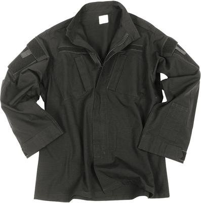 Functies Ripstop stof 2 schuine borstzakken met klittenbandsluiting Elleboogrand die kan worden versterkt door stoffering 2 schouderzakken met klittenbandsluiting voor badge 3 strepen met klittenbandsluiting voor naamplaatje Stand-up kraag met haak en lus sluiting hoge sluiting (Mandarin Collar) Rits aan de voorkant met extra klittenbandsluiting Inverteerde plooi op de rug voor meer bewegingsruimte Manchetten met klittenbandsluiting