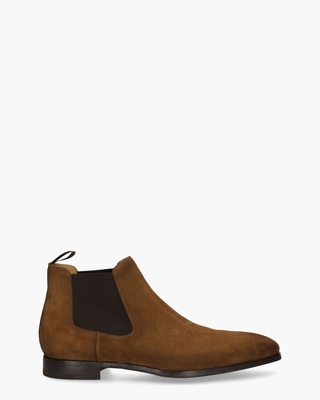 Enkellaars 20109 voor heren van het Spaanse merk Magnanni. Deze herenschoen in een klassiek Chelsea-model heeft een zacht suède upper en is aan de binnenzijde van soepel leer gemaakt. De 11 cm hoge schacht is aan beide kanten afgewerkt met elastisch materiaal. De suède bovenkant en de rubberen zool zorgen voor een sporty uitstraling zodat je dit stylish model zowel casual als gekleed kunt dragen. Kleur: cognac. (Coñac) Schoenen van het merk Magnanni vallen over het algemeen ruimer uit.