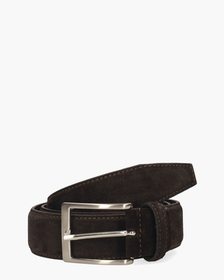 Herenriem 2035 uit de collectie van Officine Napoli. Vervaardigd van donkerbruin suède met een gladleren binnenzijde, heeft deze riem een breedte van 3, 5 centimeter en is verkrijgbaar in drie verschillende lengtematen. De riem heeft een zilverkleurige rechthoekige gesp. Deze veelzijdige riem kan gedragen worden met je favoriete jeans voor een casual uitstraling, maar staat ook mooi bij een chino of pantalon voor een meer formele look. Kleur: donkerbruin. (Moro) (S = 95 cm) (M = 105 cm) (L = 115 cm)