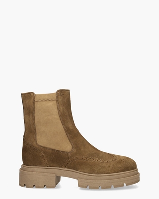Deze DLSport 6790 cognackleurige Chelseaboots voor dames geven jouw look een tijdloze klassieke en sportieve uitstraling. Het bovenwerk is gemaakt van hoogwaardig suède en afgewerkt met elegante brogue-perforaties voor een classic touch. De elastische inzet aan de zijkant van de 16 cm hoge schacht zorgt voor een goede pasvorm, terwijl de ritssluiting aan de binnenzijde het aan- en uittrekken vergemakkelijkt. Binnenin zijn de laarzen volledig leergevoerd en voorzien van een uitneembaar voetbed voor optimaal draagcomfort. De stevige profielzool van 3 cm en de 5 cm hak geven de laarsjes een moderne, robuuste uitstraling en bieden uitstekende grip. Kleur: cognac. (Tan) ...