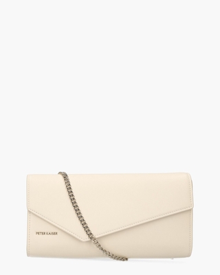Subtiel, elegant en tijdloos: de 69043/44 clutch van Peter Kaiser is het perfecte accessoire voor een verfijnde look. Het gebroken witte leer zorgt voor een zachte, luxe uitstraling, terwijl het goudkleurige PK-logo op de voorkant een chique finishing touch geeft. De clutch sluit met een discrete magneetsluiting onder de flap en heeft een stijlvol gevoerde binnenkant met een handig ritsvak om essentials veilig op te bergen. Dankzij de afneembare zilverkleurige chain kun je deze tas op meerdere manieren dragen: klassiek in de hand, elegant over de schouder of casual crossbody. Afmetingen: hoogte: 12 cm breedte: 24 cm diepte: 4, 5 cm. Kleur: off-white. (Off-White) Mix en match met de bijpassende PK loafers 79440/44 () of 79640/44 () pumps.