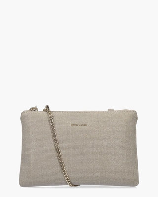 Deze stijlvolle Peter Kaiser clutch 69044/910 is een verfijnd accessoire met een tijdloze uitstraling. De tas is uitgevoerd in prachtig beige/zandkleurig textiel met een opvallende glinstering. Het goudkleurige PK-logo op de voorkant zorgt voor een subtiel en chic detail. De tas sluit veilig met een ritssluiting aan de bovenkant en heeft een ruim compartiment waarin je essentials overzichtelijk blijven. Dankzij de afneembare zilverkleurige chain draag je de clutch op meerdere manieren: elegant in de hand, casual over de schouder of trendy crossbody. Afmetingen: hoogte: 16 cm breedte: 23 cm diepte: 3 cm. Kleur: zand/beige/zilver. (Sand Shimmer) Maak jouw outfit compleet met de bijpassende PK sandalen 78343/910 (), slingbacks 79442/910 () of pumps 72447/910 ().